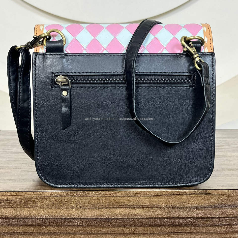 New 2025 Arrival Hand Tooled Genuine Leather Checkered Crossbody Bag Cowhide Women's Small Western Style Saddle Shoulder Handbag