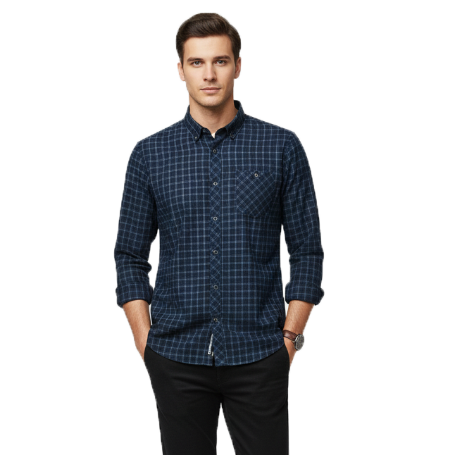 New 2025 Solid 100% Cotton Long Sleeve Button-Up Dress Shirt for Men Summer Casual Eco-Friendly Breathable