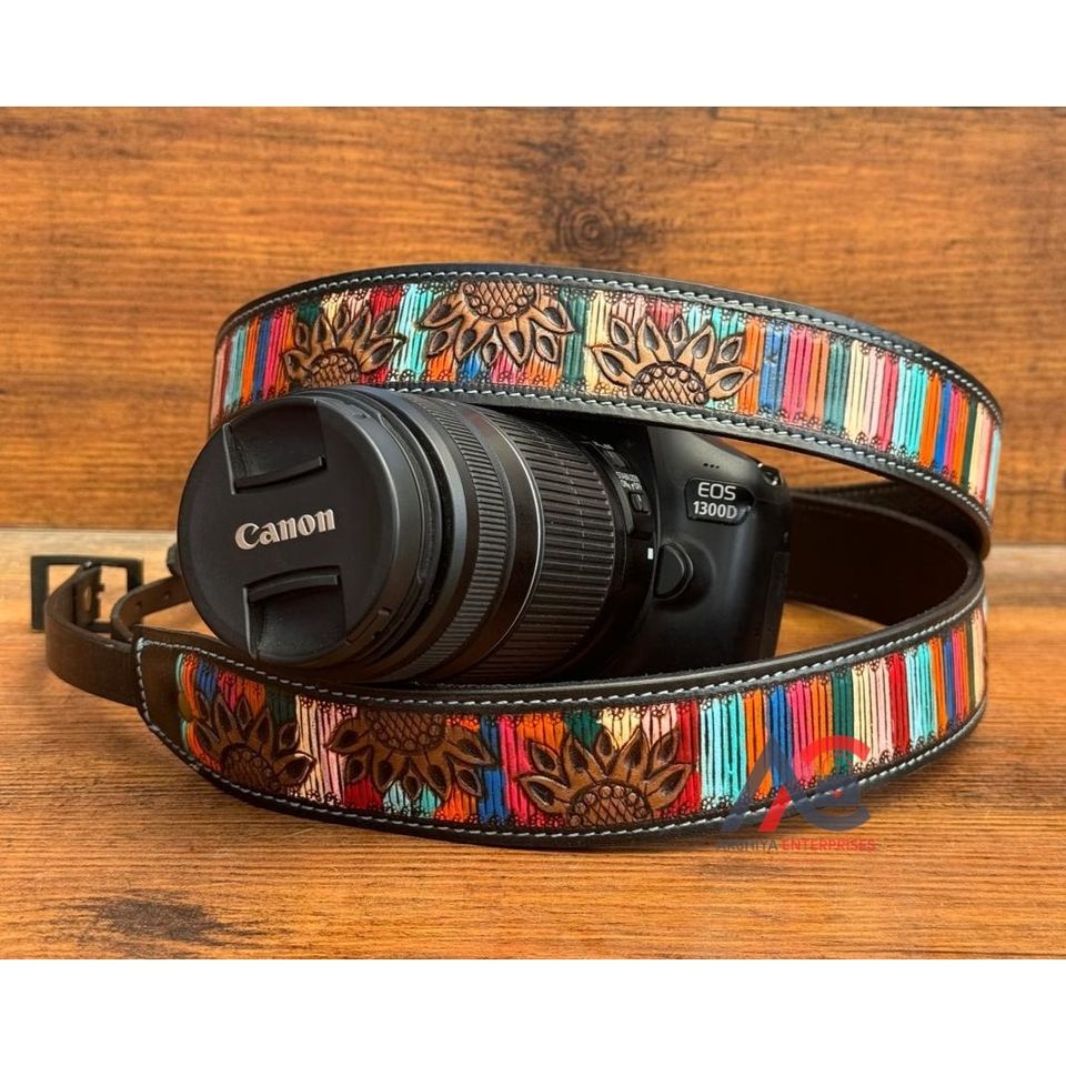Hand Tooled Leather Camera Crossbody Bag Strap