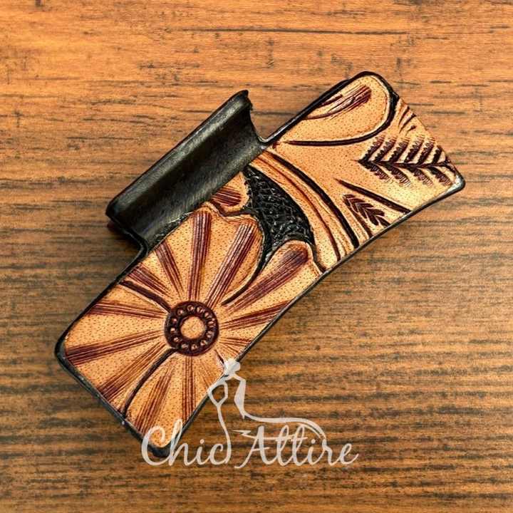 New 2025 Elegant Cute Luxury Vintage Western Style Women's Hand Tooled Leather Hair Clip Daily Party Genuine Leather Claw Clips