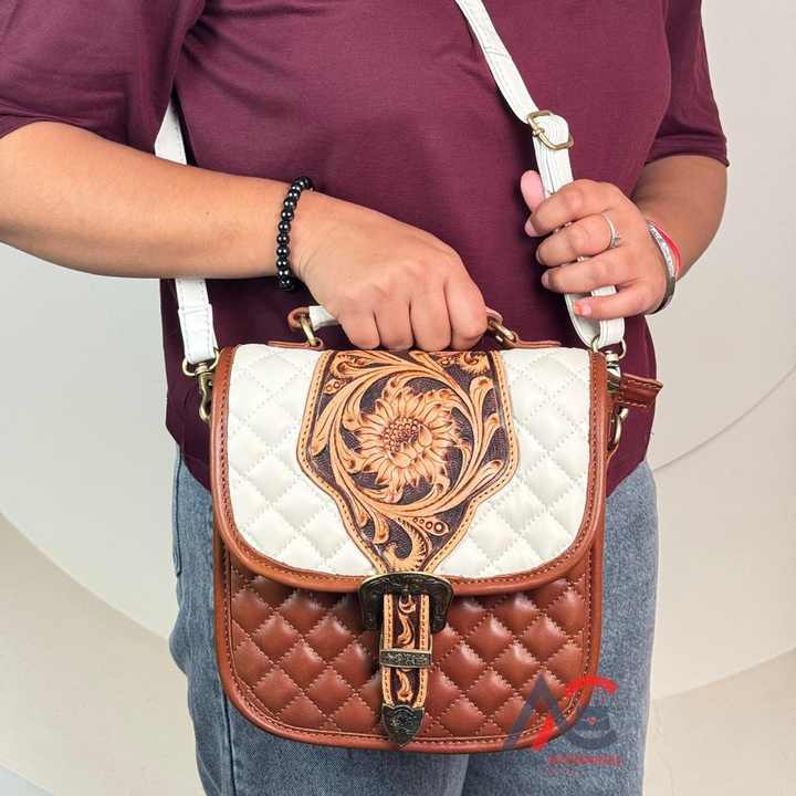 Product name:Hand Tooled Quilted Western-style Ornate Buckle Handbag