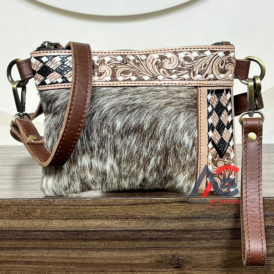 Product name:Hand Tooled Cowhide Checkered Fashionable Crossbody Bag