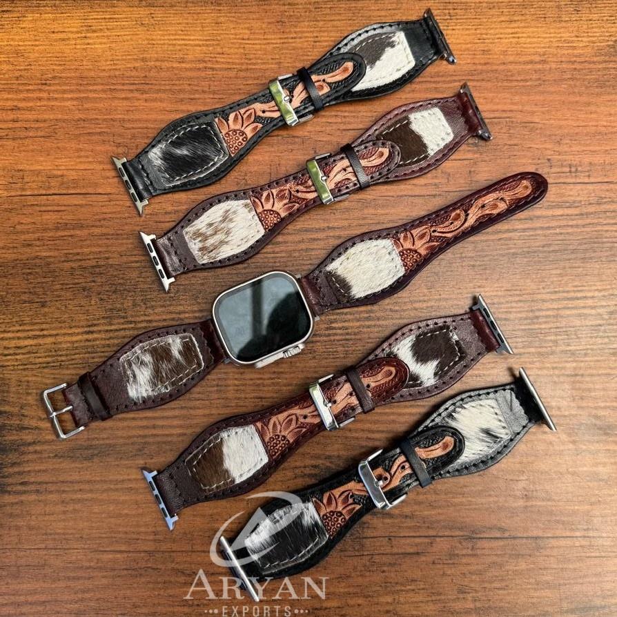 Hand Tooled Leather Smart Watch Band