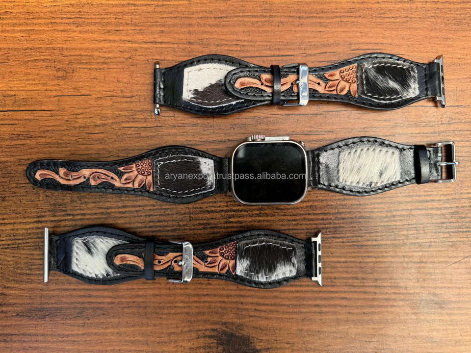 New 2025 High Quality Women Hand Tooled Leather Watch Straps Female Watchband for apple Watch Series Cowhide Leather Wrist Bands