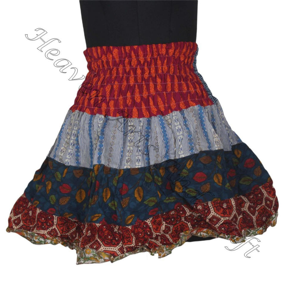 Keywords:Vintage Cotton Sari Patches Mini Skirt