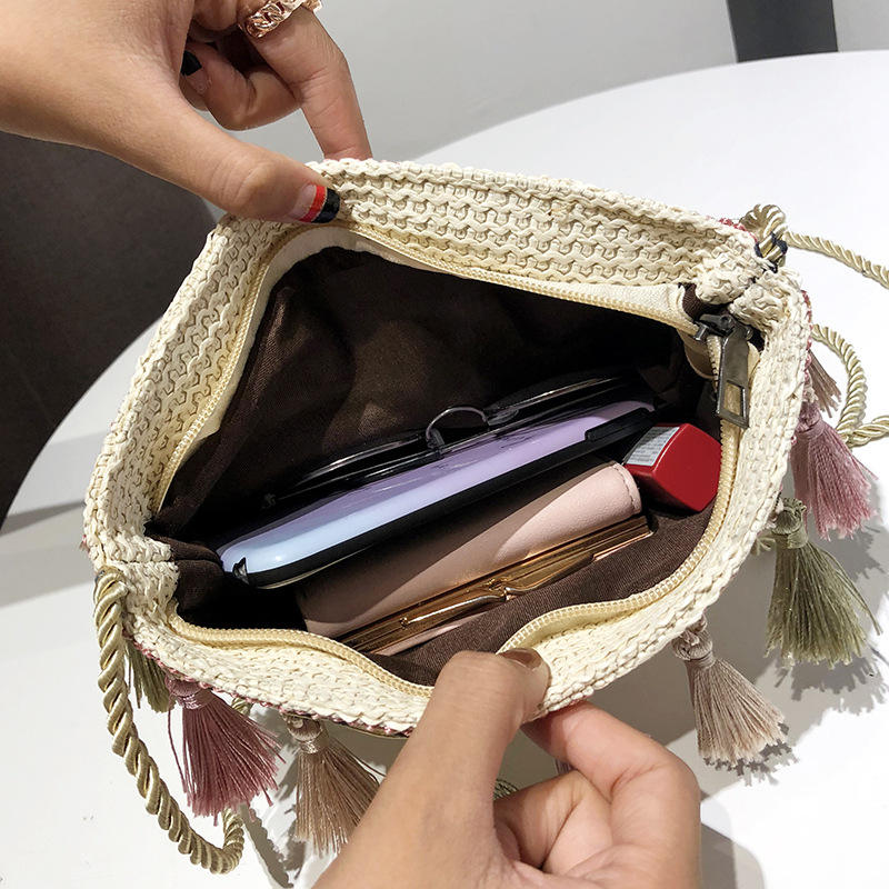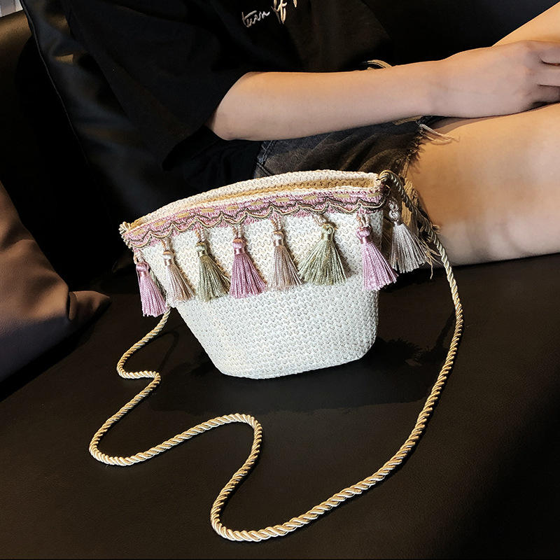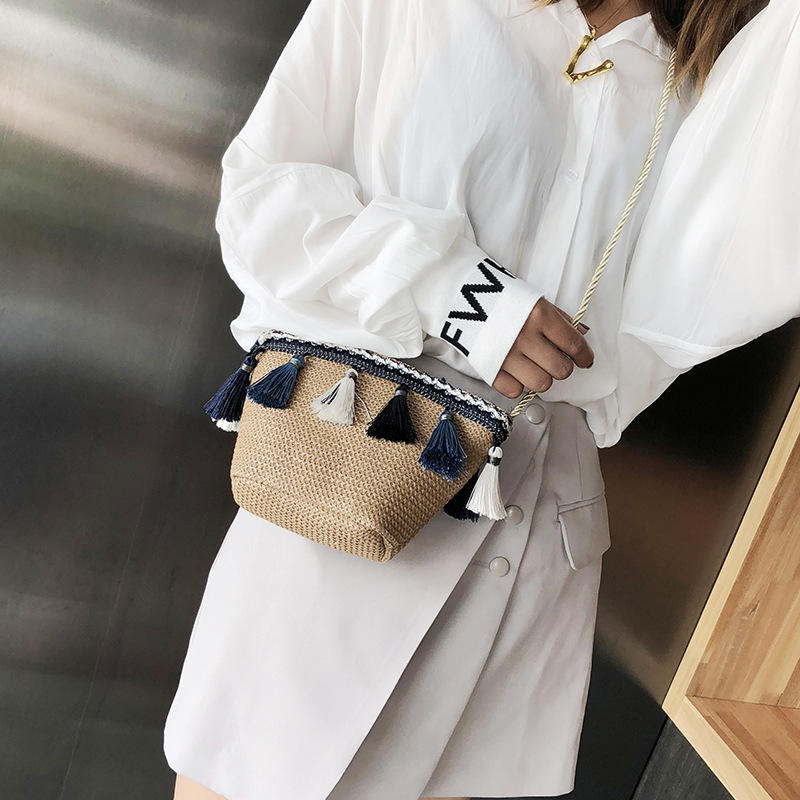 New 2025 Straw Bag Women Summer Casual Bucket Tote Tassel Chain Shoulder Beach Bag for Teenage Girls Bohemia Beach Handbag