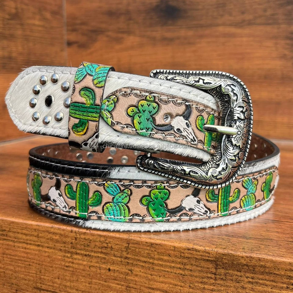 Product name:Hand Tooled Cowhide Leather Alloy Buckle Belt