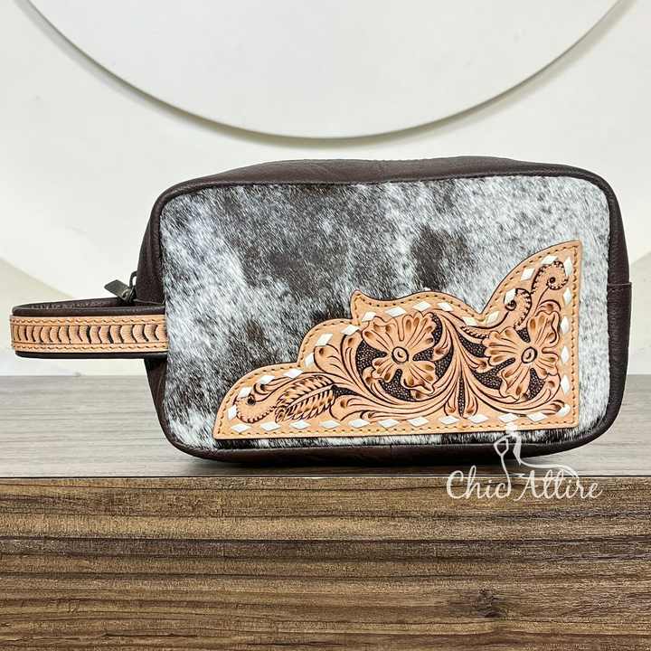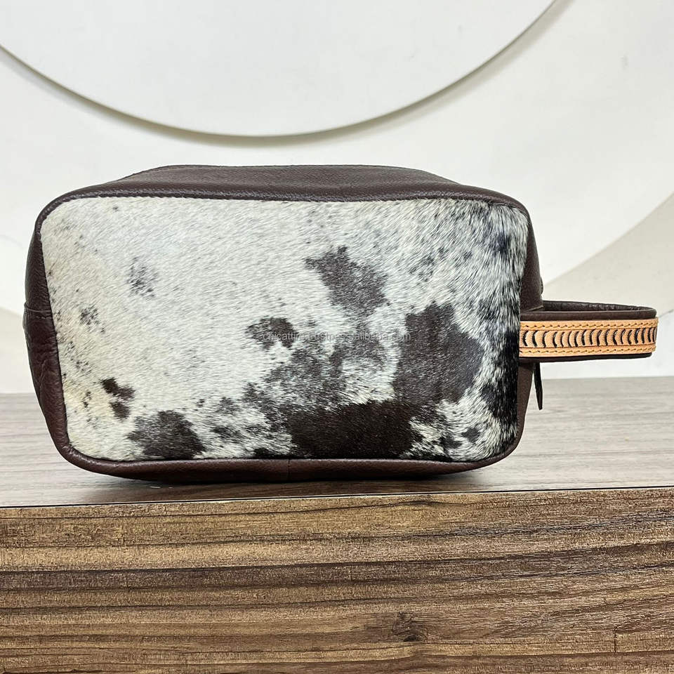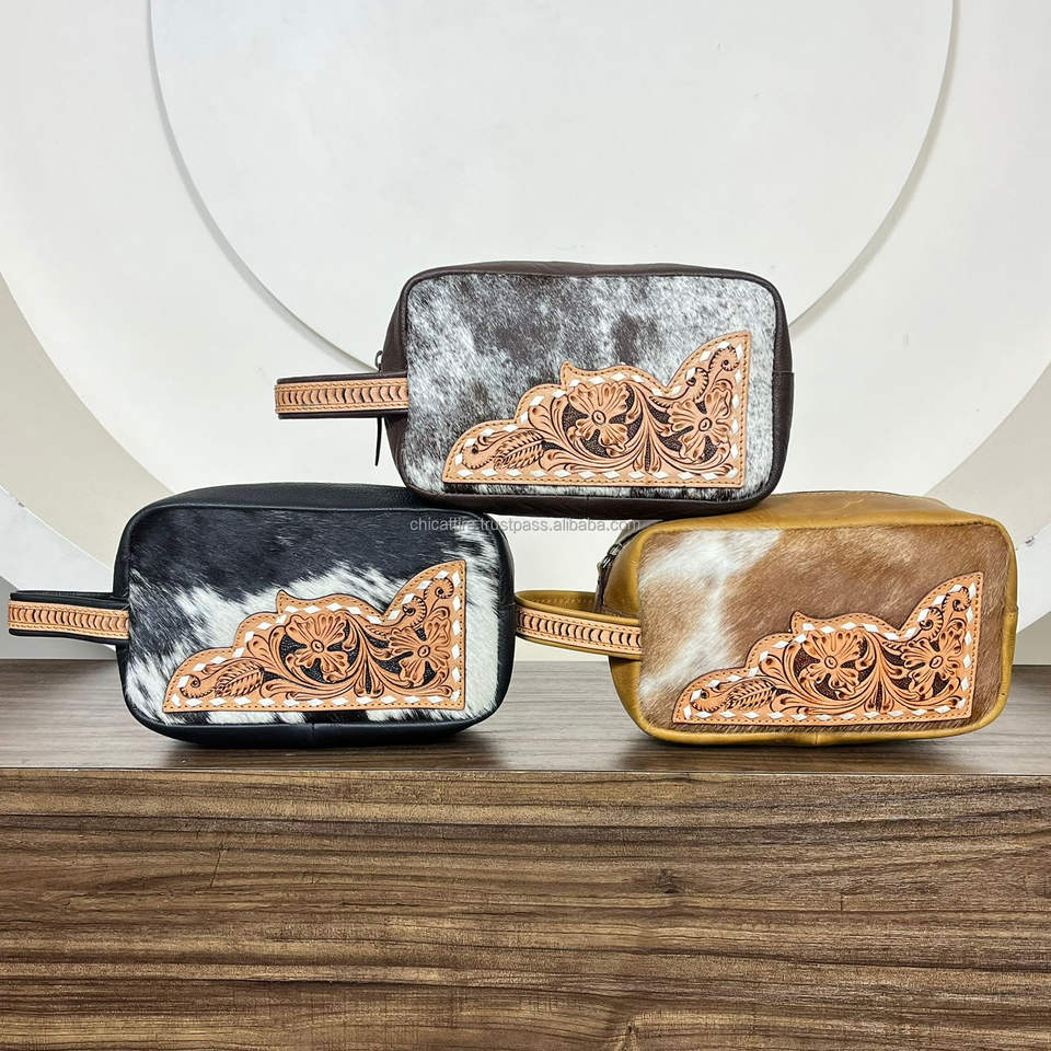 New 2025 Wholesale Large-Capacity Portable Hand Tooled Leather Toiletry Bag Female Organizer Wash Bag Genuine Cowhide Makeup Bag
