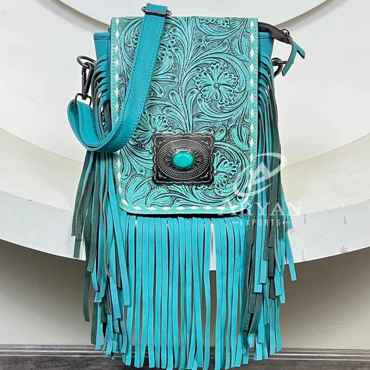 Product name:Hand Tooled Genuine Leather Fringe Crossbody Bag