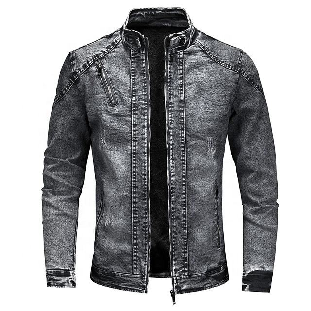 New 2026 High Quality Custom Logo Canvas Jacket Oem Designs Winter Mens Denim Jacket Blue Fleece Zipper Jeans Jacket