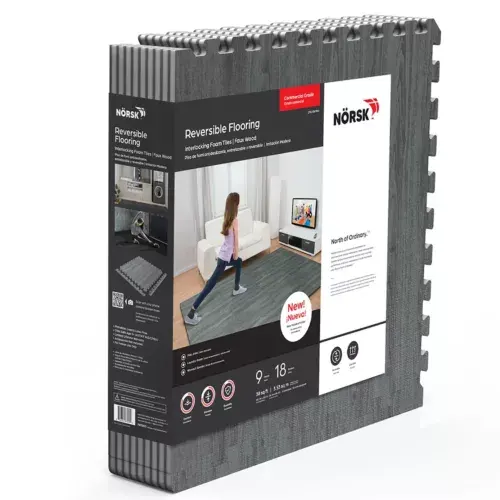 New 25\" X 25\" Reversible Gray Wood & Black Foam Flooring 9 Tiles-Multipurpose Office or Home Use