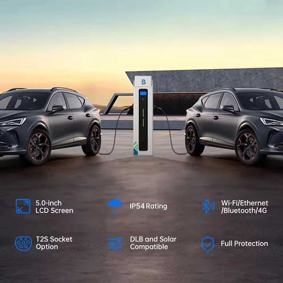 New 2x22kW Floor-Mounted AC EV Charger Commercial Electric Car Charging Station OCPP1.6J Type 1/2/GB/T Connectors 5inch LCD