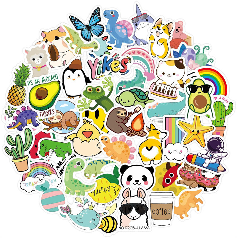 New 50pcs Cartoon Summer Ins Waterproof Stickers Small Fresh Aesthetic Labels for Packaging Luggage Water Bottles Outdoor Items