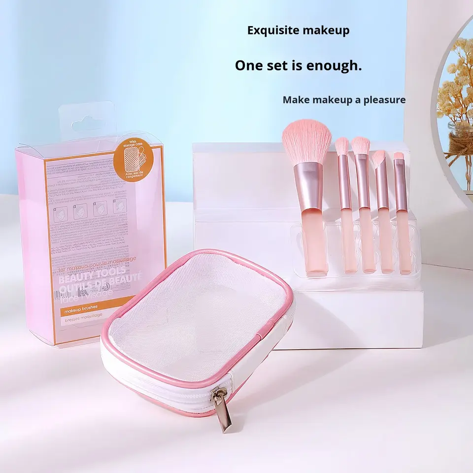 New 5pcs Mini Synthetic Hair Powder Brush Eyeshadow Nose Shadow Face Professional Makeup Brush Set With Portable Box