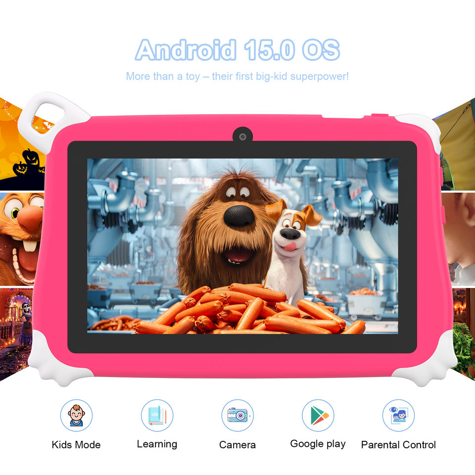 New 7 Inch Android 16 MTK Quad-core 1.3GHz Kids Tablet Capacitive Screen WiFi 8+256GB 5000mAh USB Type-C CM86 PINK