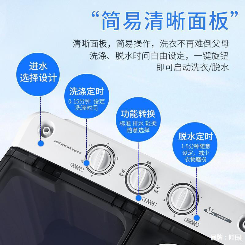 New 7kg Double Bucket Hotel Household Rental Housing Semi-automatic Twin Tub Design Electric Washing Machine Plastic White 220V