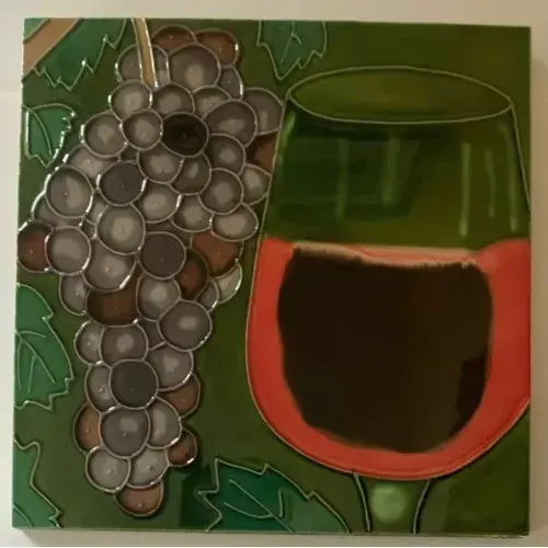 New 8x8 Ceramic Tile Wall Art Grapes Wine Glass Decorative for Bedroom Dining Gym-Solid Structure Stain Float Glass Block