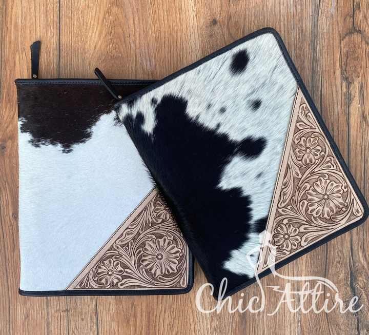 New A4 Size Hand Tooled Genuine Leather Certificate Holder Cowhide Multifunctional Portfolio With Zippered Closure & Ring Binder