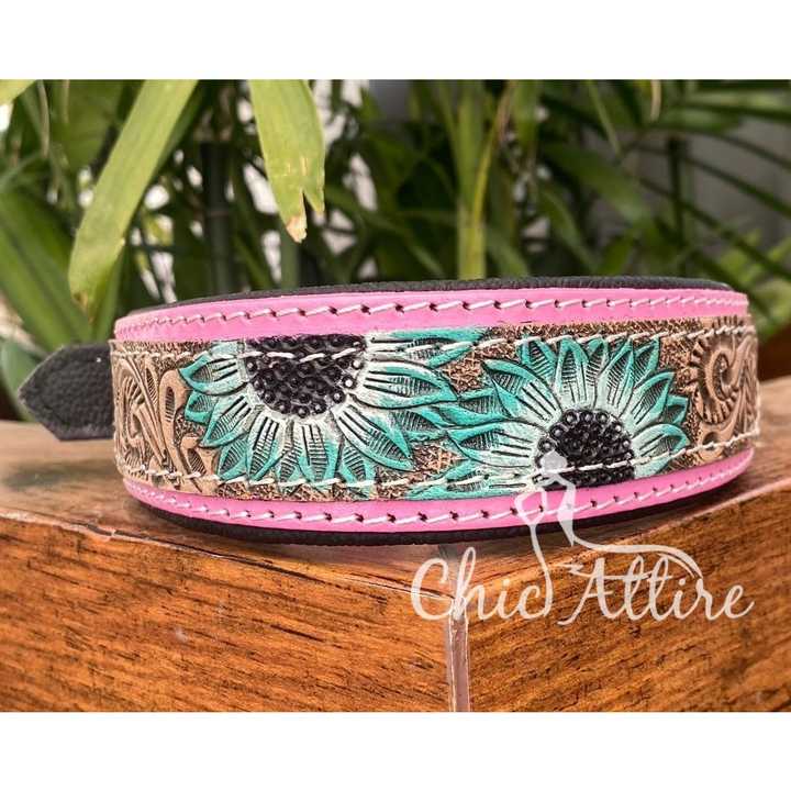 Product name:Hand Tooled Leather Padded Dog Collar