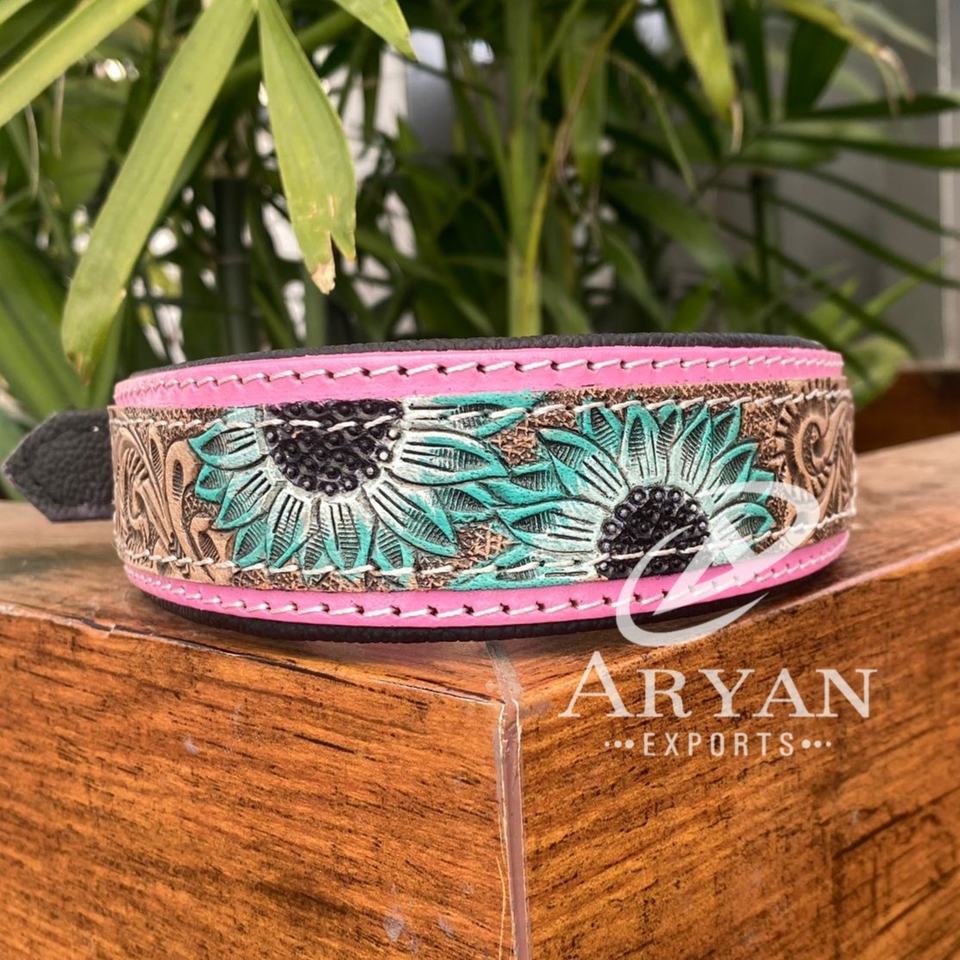 New Adjustable Comfortable Soft Hand Tooled Leather Padded Dog Collar High Quality Genuine Cow Leather Pet Collar for Small Dogs