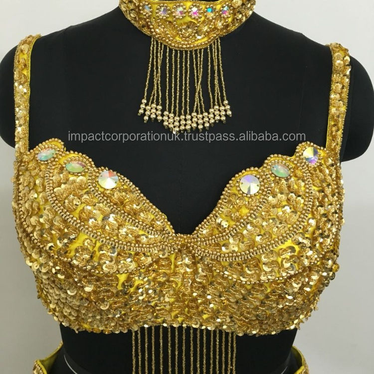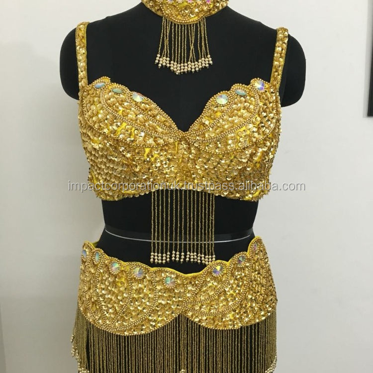 New Adult Wear Sexy Belly Dance Costume Dress FASCINATING Egyptian Bra Belt Set With Hand Beaded Sequins for Stage Dancewear