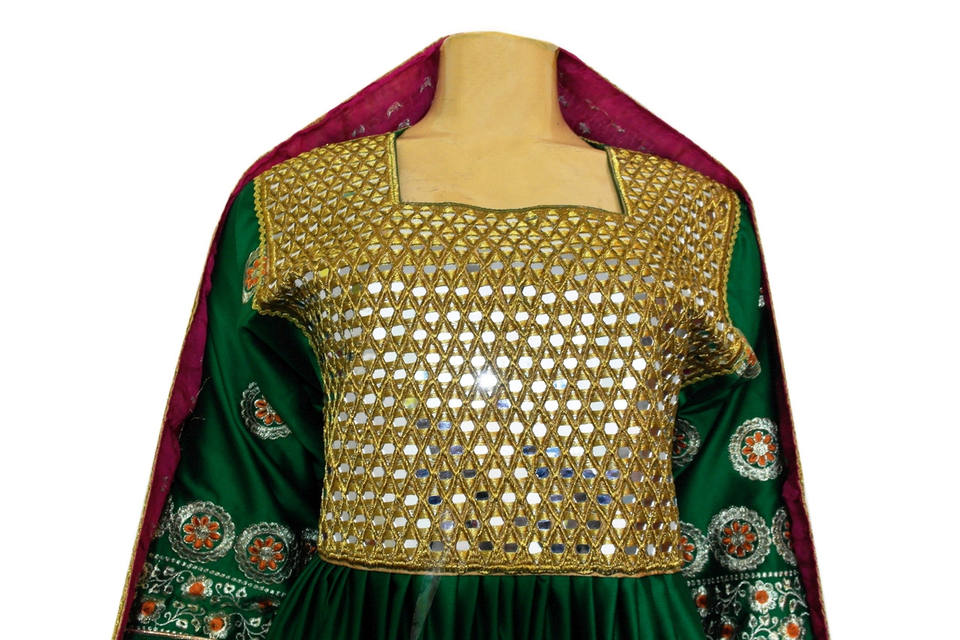 New Afghani Kuchi Banjara Tribal Hot Selling Mirrors Work Afghan Clothes in Green Color Satin Chiffon by WS INTERNATIONAL