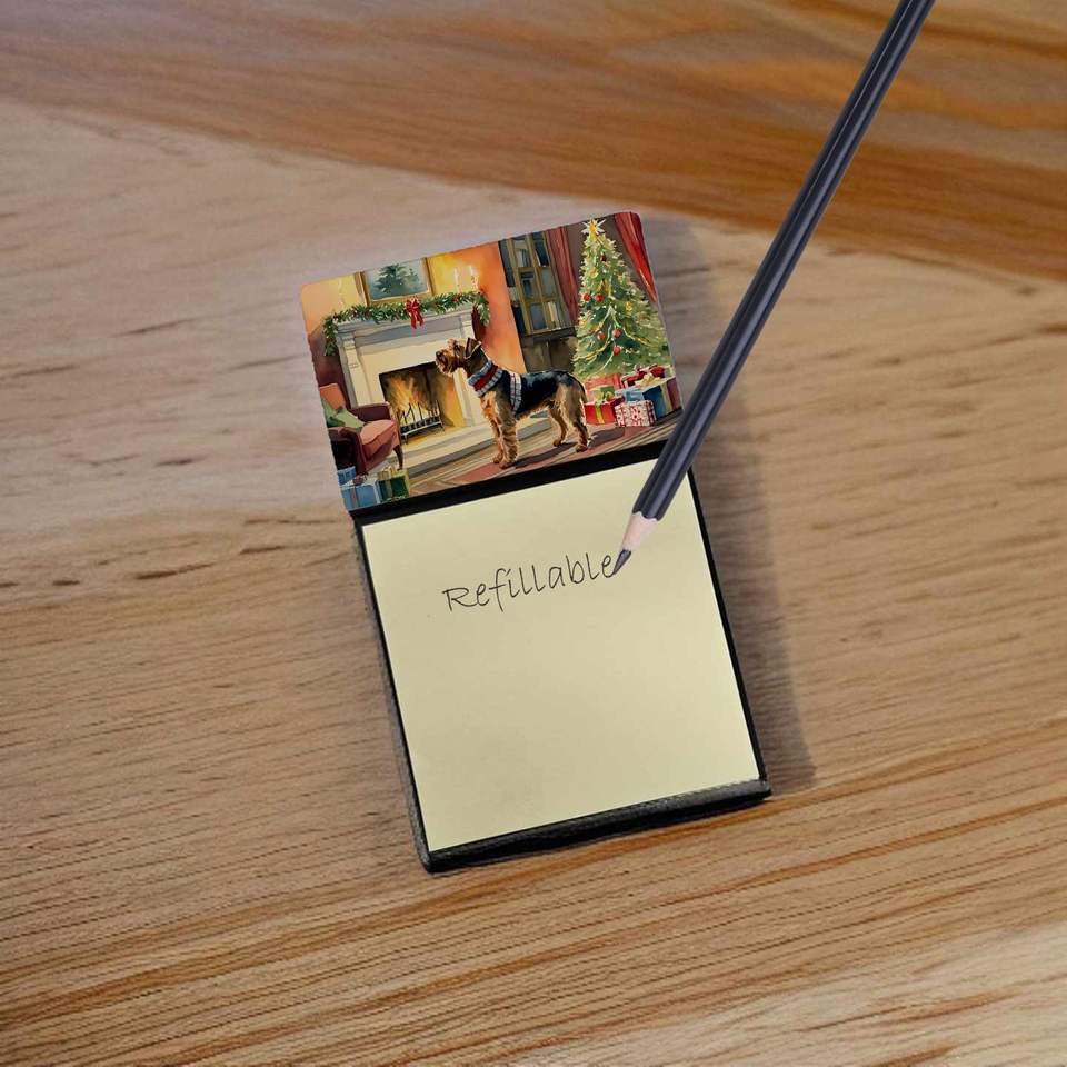 New Airedale Terrier Christmas Sticky Note Holder Cozy Christmas Refillable Dispenser Self-Sticky Memo Pads Blank Desk