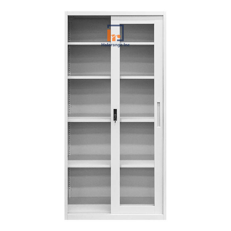 New All-steel Structure Filing Cabinet With 4 Shelves 2 Glass Sliding Door Full Body Iron Door Office School Filing Cabinet