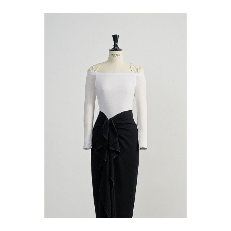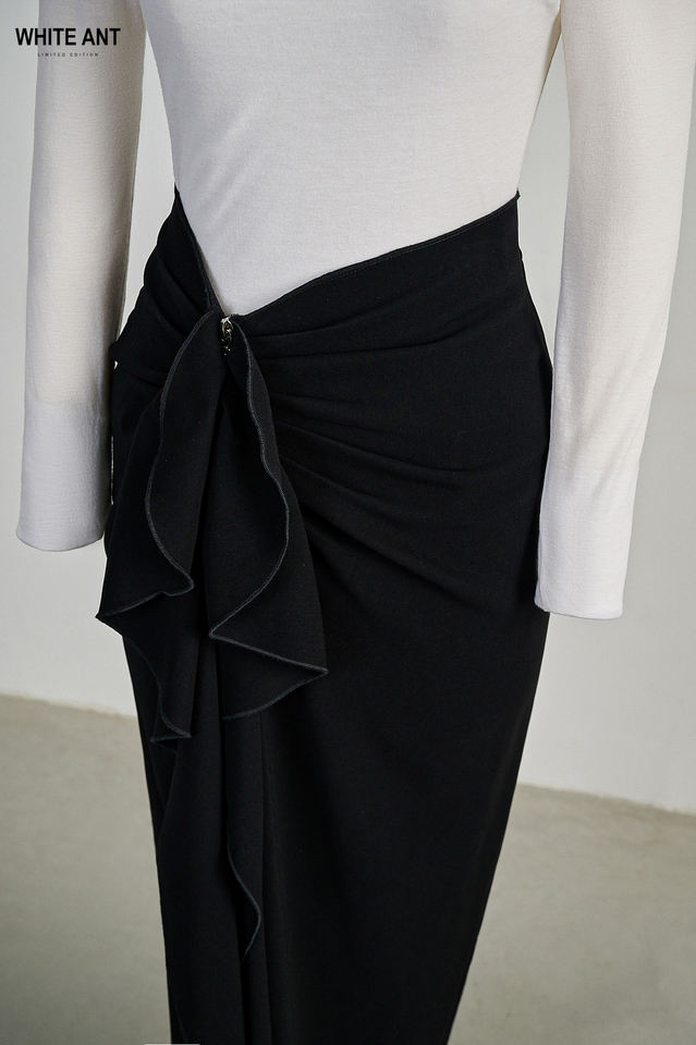 New Amazing ANNIE ASYMMETRIC SKIRT Women's Skirts Black Long Pencil Skirt With Ruffles Front Slit From WHITEANT Vietnam