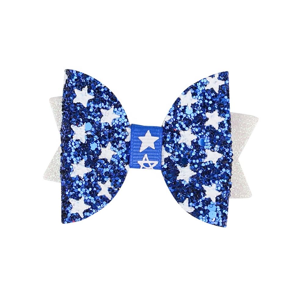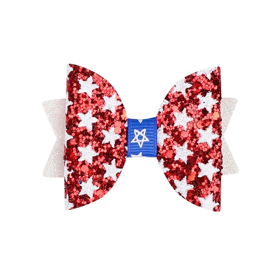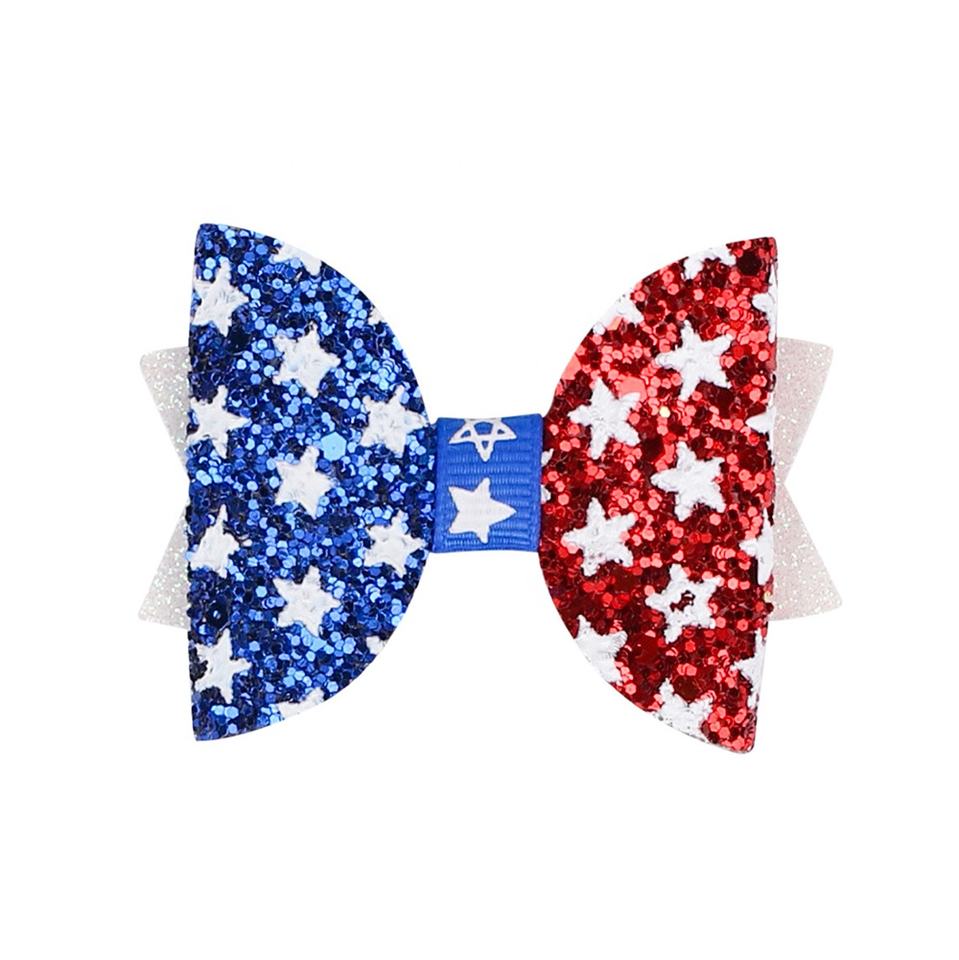 New American Independence Day Party Children's Fashion Hair Accessories American Flag Five Pointed Star Glitter Bow Tie Hairpin
