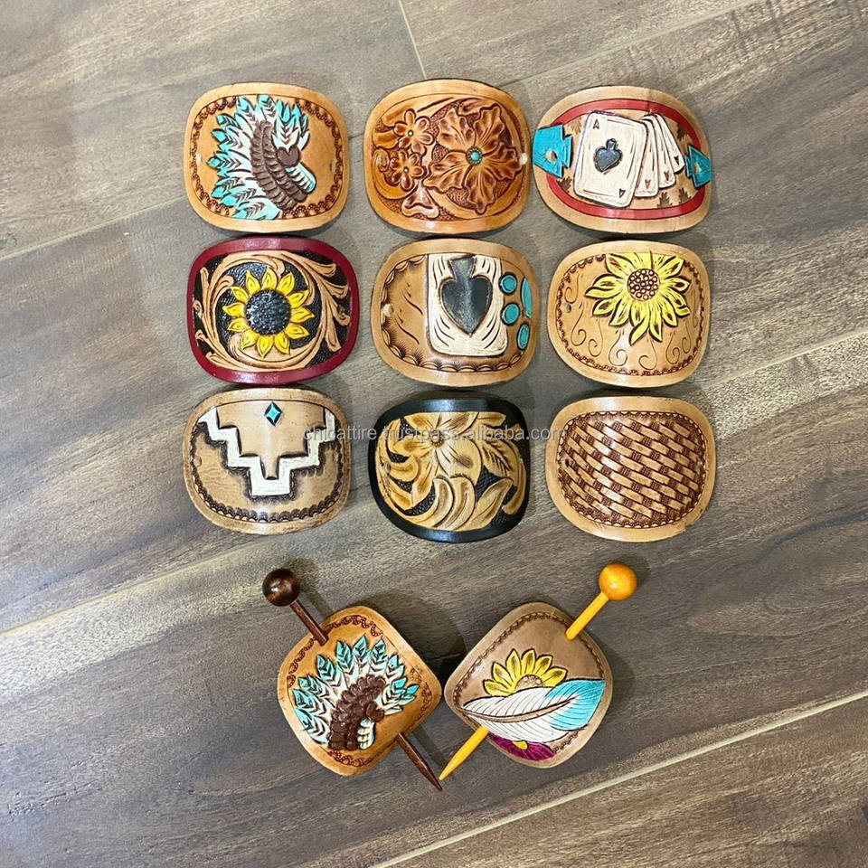 New American Western Style Real Genuine Leather Women Barrette Hair Clips Tooled Hand Painted High Quality Vintage Hair Stick