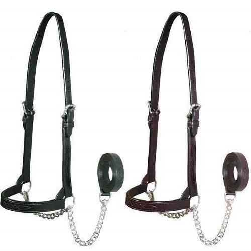 New and Improved Premium Flat Fancy Stitch Leather Cattle Show Halter With Matching Chain Lead Multifunctional