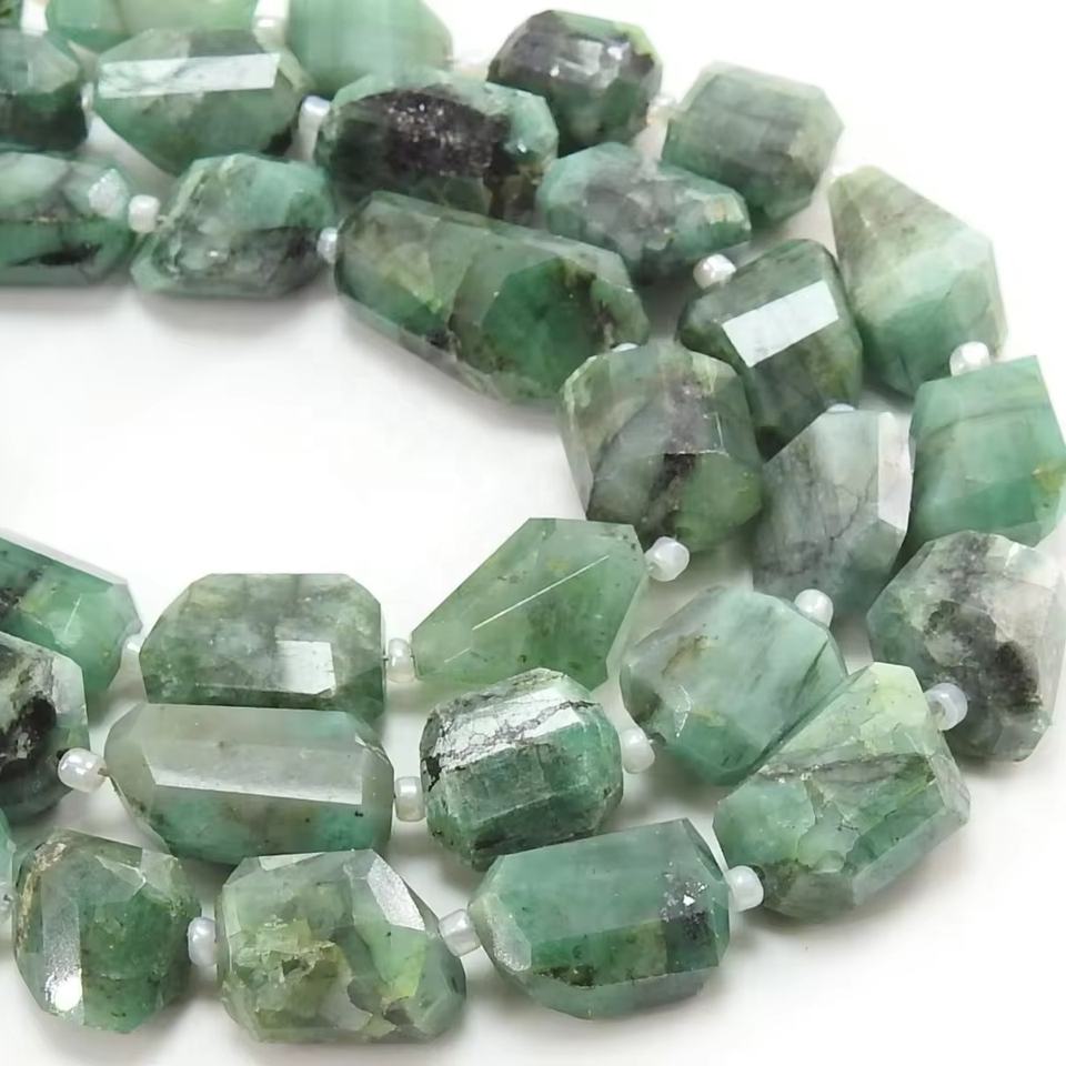 Emerald Faceted Tumble Nugget 8-Inch Strand 10-15MM Long Approx Loose Beads Natural Stone Wholesaler Supplies