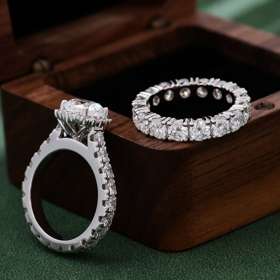 New Arrival 10K Soild White Gold Classic Design DEF VVS Laboratory Grown Diamond Two Finger Ring for Wedding Rings Woman Set
