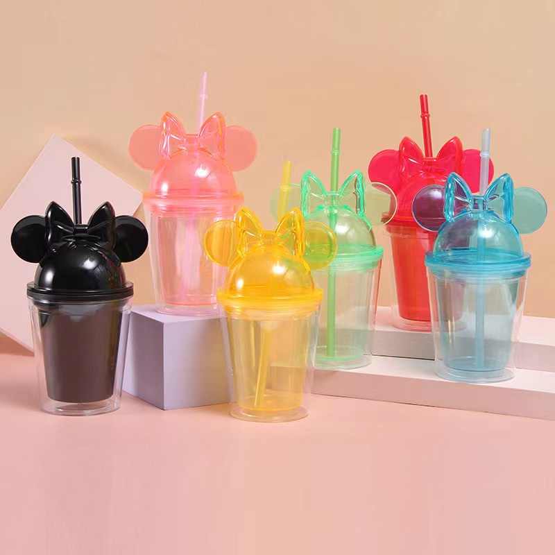 New Arrival 12oz 15oz clear Double Wall Minnie Mouse Mug Plastic Water Bottle Tumbler Cups Kids Sippy Cup