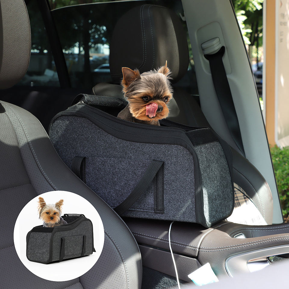 New Arrival 2-in-1 Pet Console Booster Seat Denim Felt Luxury Foldable Removable & Washable Car Carrier for Cats & Dogs