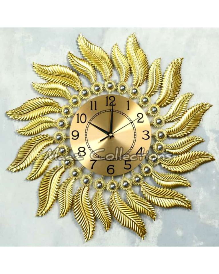 New Arrival 2022 European Style Light Luxury Golden Living Room Wall Clock Wrought Iron Leaf Wall Decoration