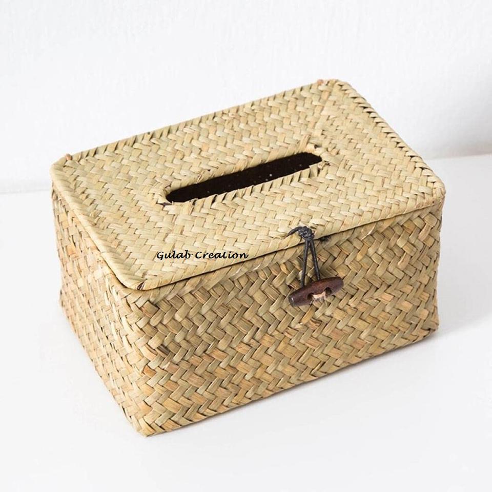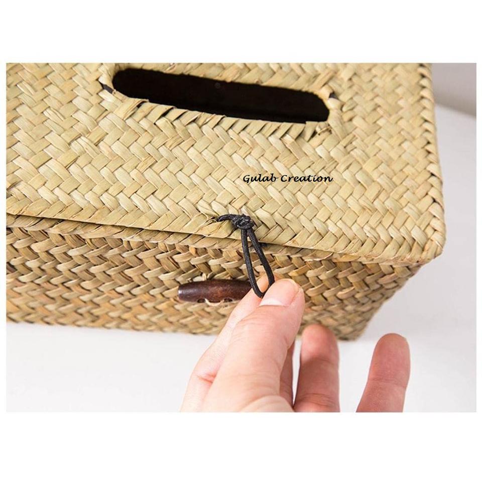 Handwoven Rattan Tissue Box Holder with Lid Rustic Rectangular Wicker Tissue Dispenser for Home, Office, or Bathroom Decor