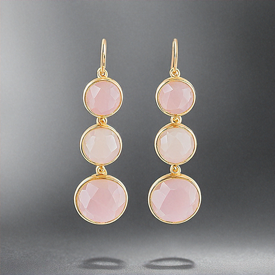 New Arrival 2024 Earrings With Natural Pink Chalcedony Gemstones With 925 Sterling Silver 18K Gold Plated for Women and Girls