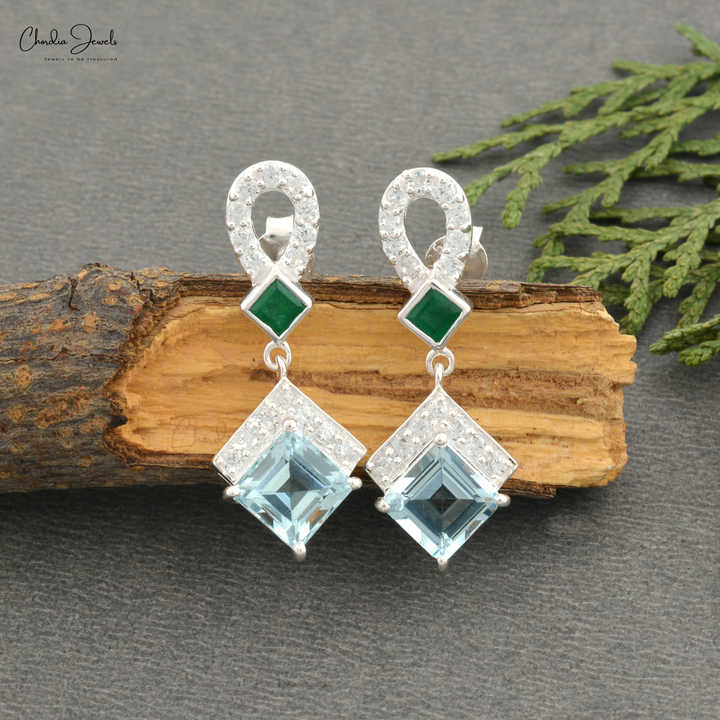 New Arrival 2025 925 Sterling Silver Emerald Aquamarine and Cubic Zirconia Push Back Dangle Earrings Fine Jewelry Gift for Women