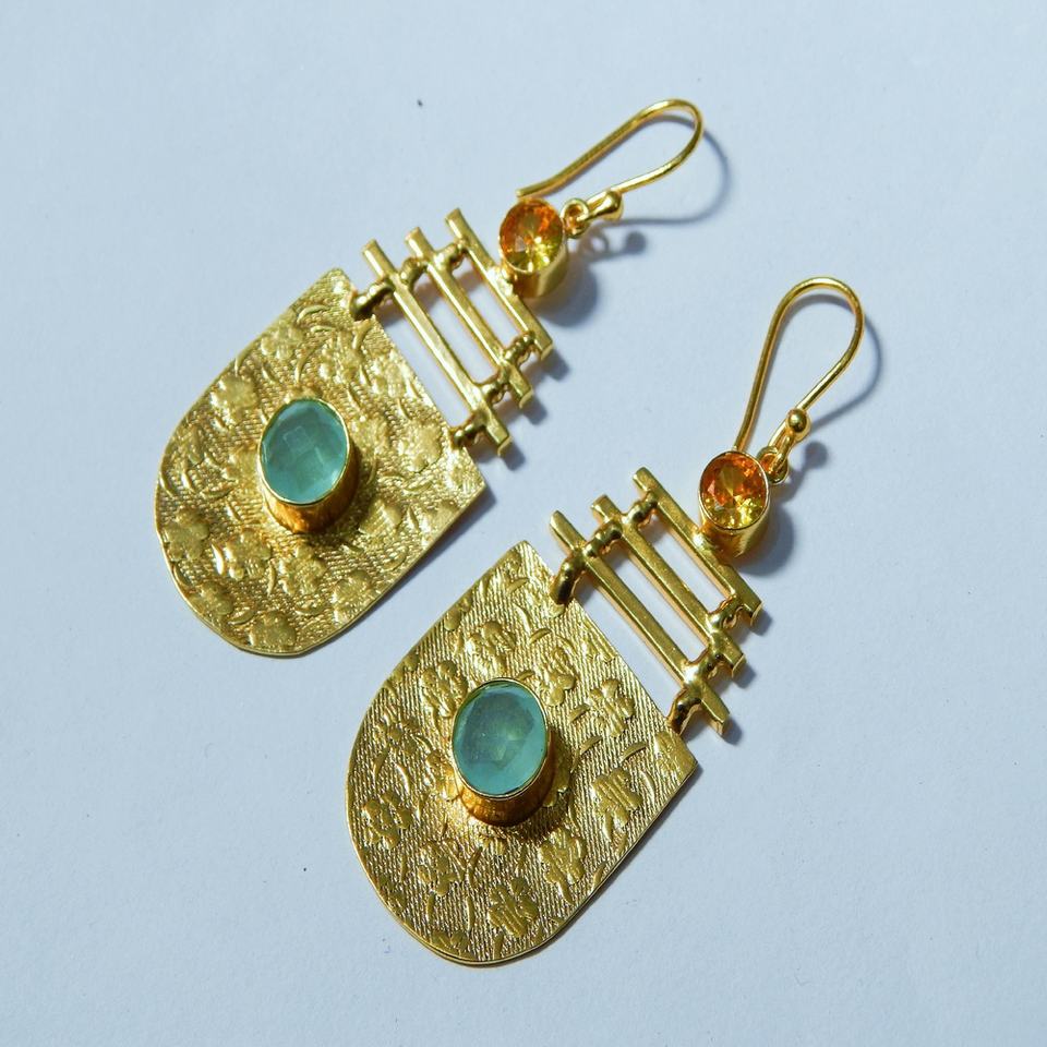 New Arrival 2025 Chalcedony and Citrine Quartz Stone Work Earrings Handmade Jewellery for Women and Girls for Wedding Party's