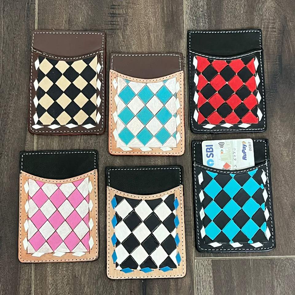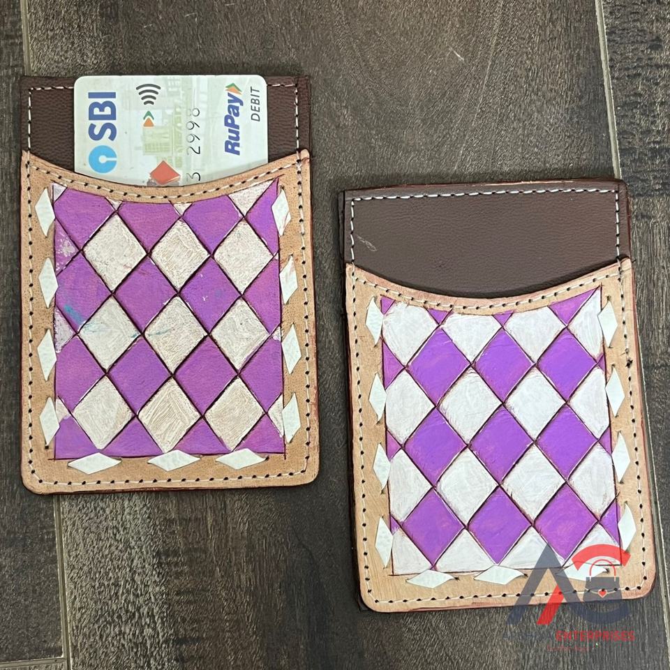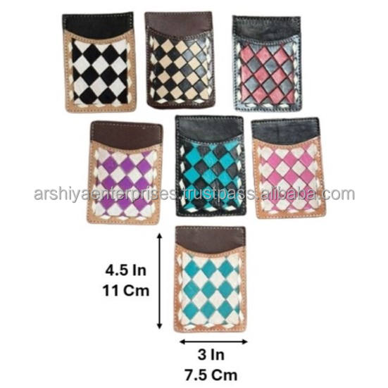 Type:Hand Tooled Checkered Leather Credit Card Holder Wallet