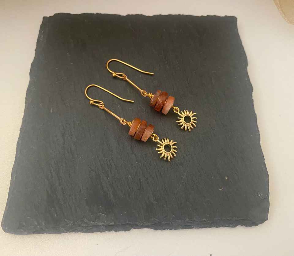 New Arrival 2025 Designer Brass Gold Plated Earrings Natural Sunstone and Brass Dangle Earrings for Women and Girl Wear in Party