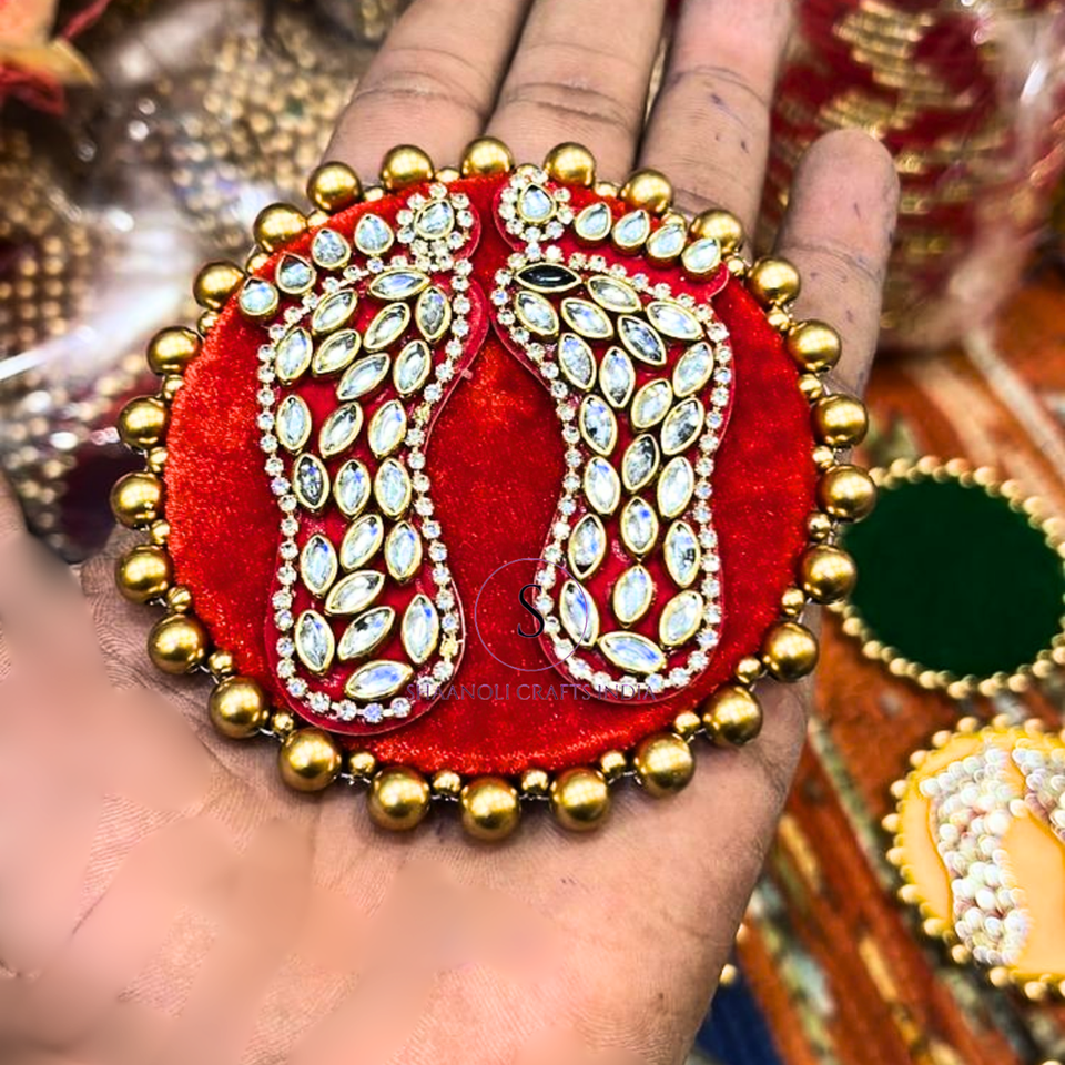 New Arrival 2025 Designer Handmade Stone Work Shri Laxmi Charan Paduka for Diwali Decoration Laxmi Foots Religious Gifts