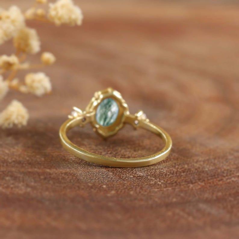 New Arrival 2025 Gold Filled Oval Moss Agate Ring for Women Sterling Silver Minimalist Ring Wedding Ring