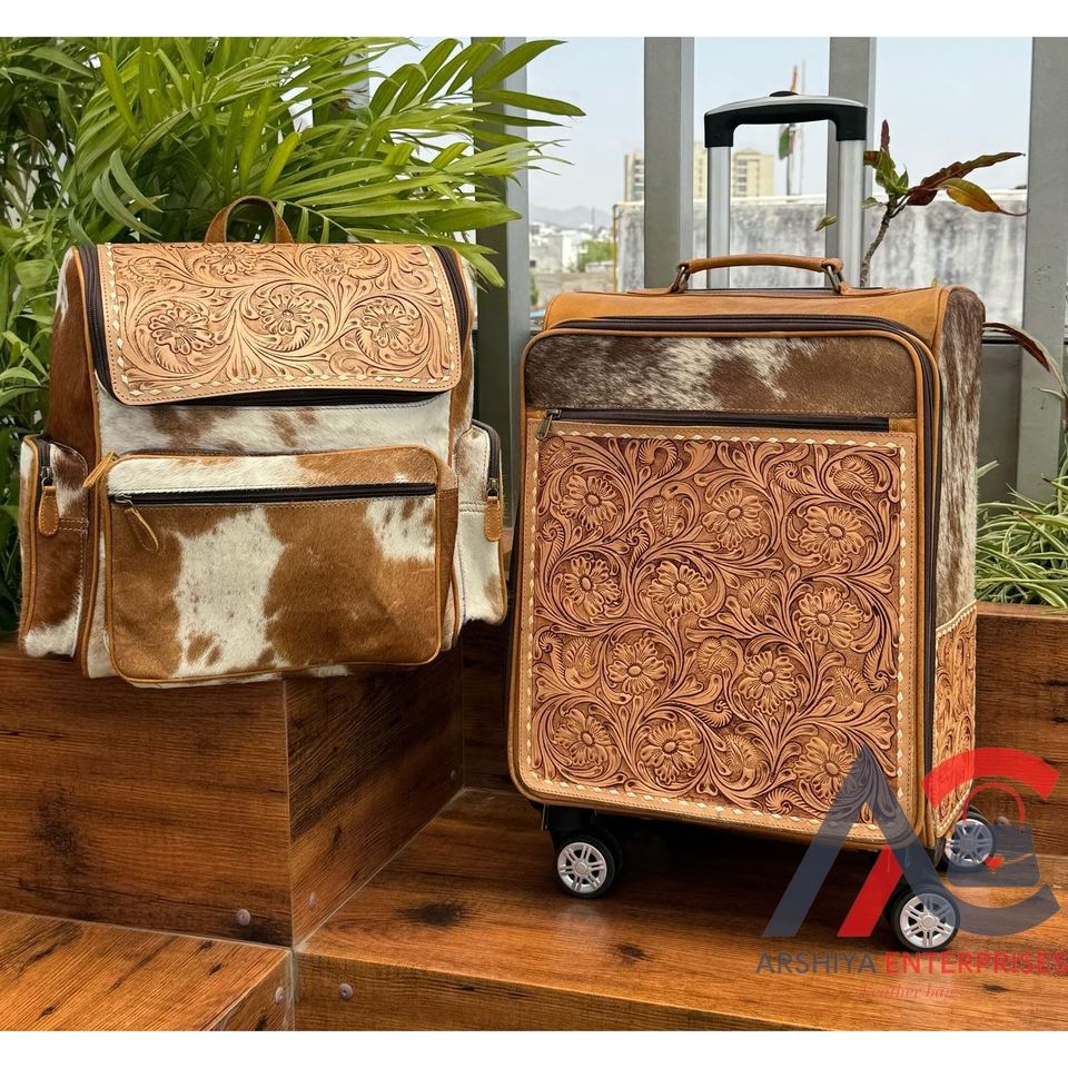 Product name:Hand Tooled Cowhide Leather Travel Luggage Set