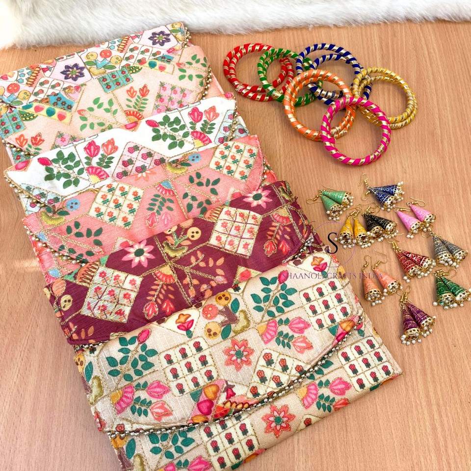 Cultch:Embroidery Work Cultch With Pearl Handle