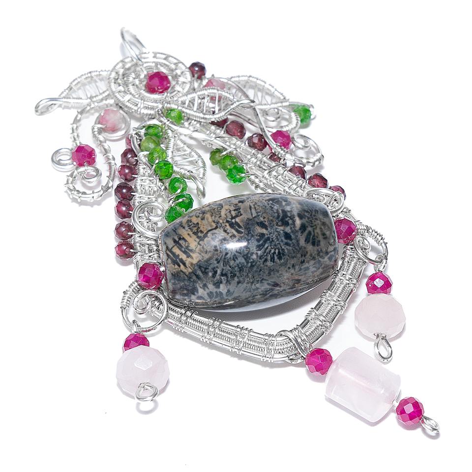 Style:Bold leaf design with large black coral - symbolizing feminine power