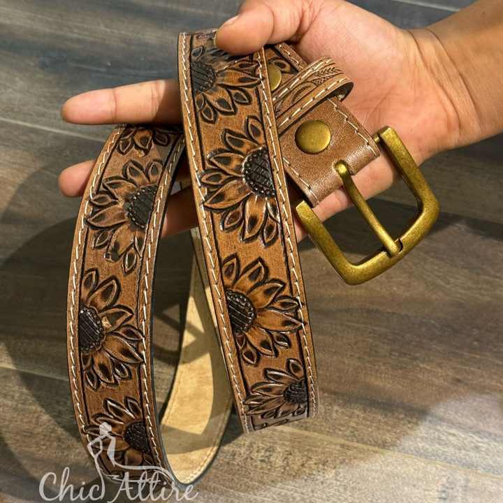 Product name:Hand Tooled Cowhide Leather Alloy Buckle Belt