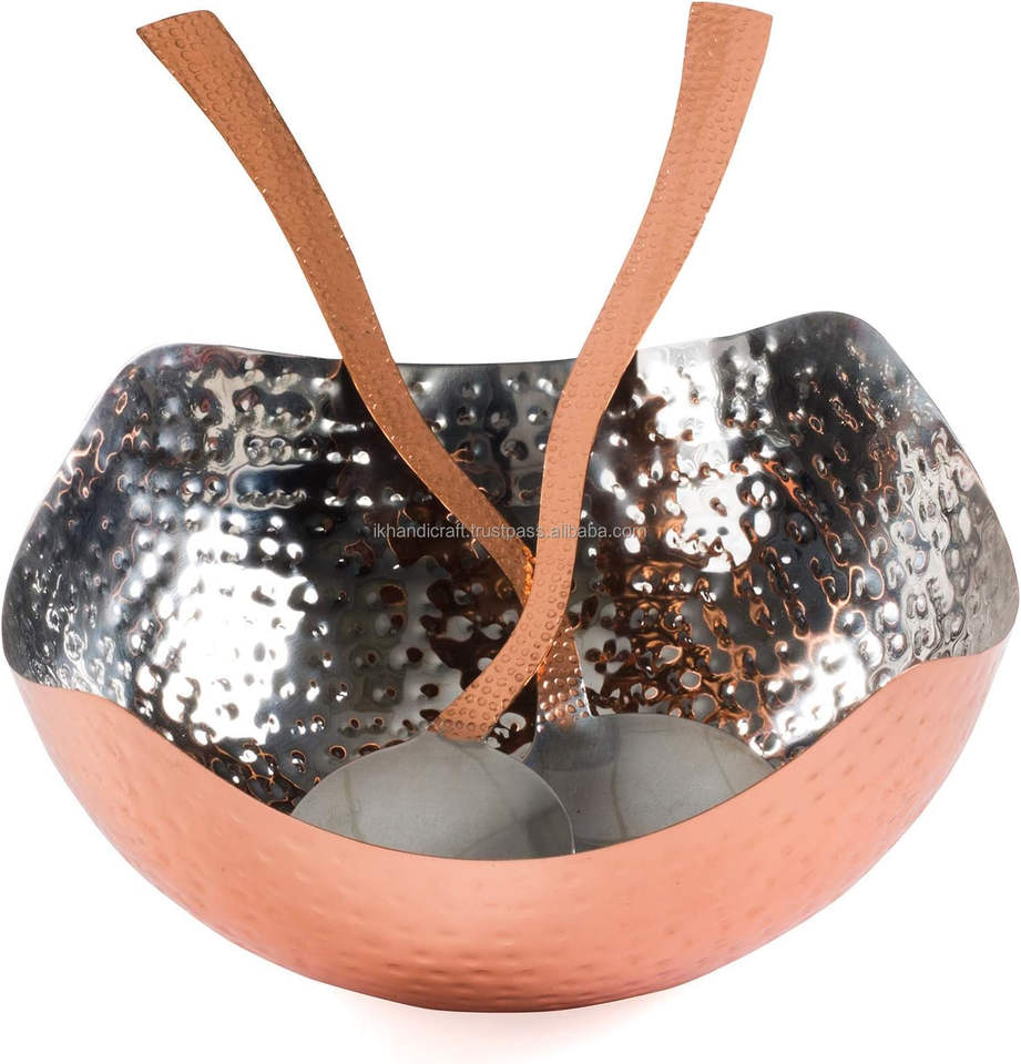 New Arrival 3-Piece Hammered Copper Salad Bowl Servers Set Luxury Customised Private Labeling Low Price Trending Product